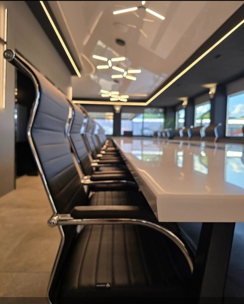 - Imagine elegantă și profesionistă – tavanul alb lucios adaugă o notă sofisticată, ideală pentru un spațiu de business unde imaginea contează.
