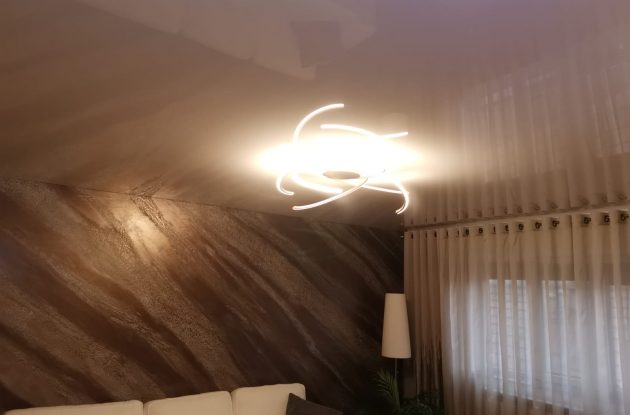 Amenajare apartament cu tavan alb lucios și tavan negru lucios Tavane Lucioase
